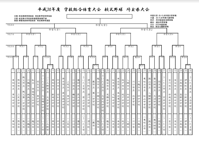 埼玉野球応援団 埼玉県中体連野球専門部 平成30年度 学校総合体育大会 県大会